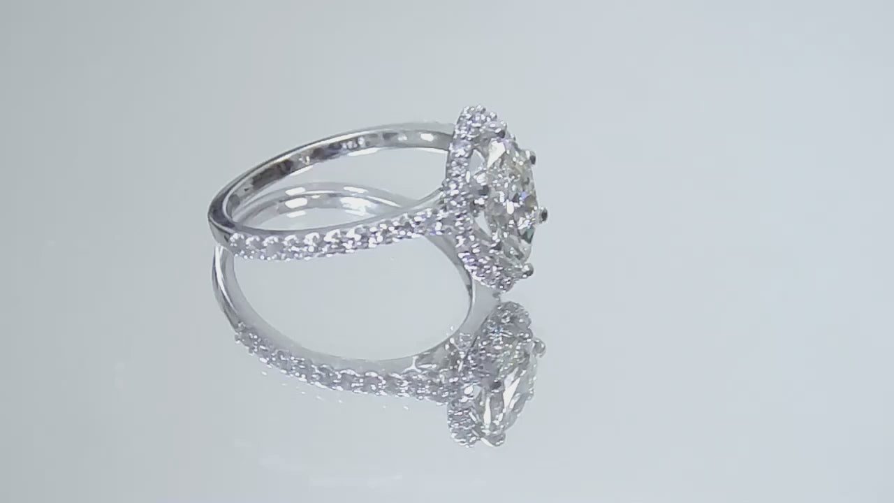 1.37ct TW Halo Style Natural Marquise Shape Diamond Engagement Ring in 14K White Gold - w/ 1.04ct Natural Marquise Shape Center Diamond
