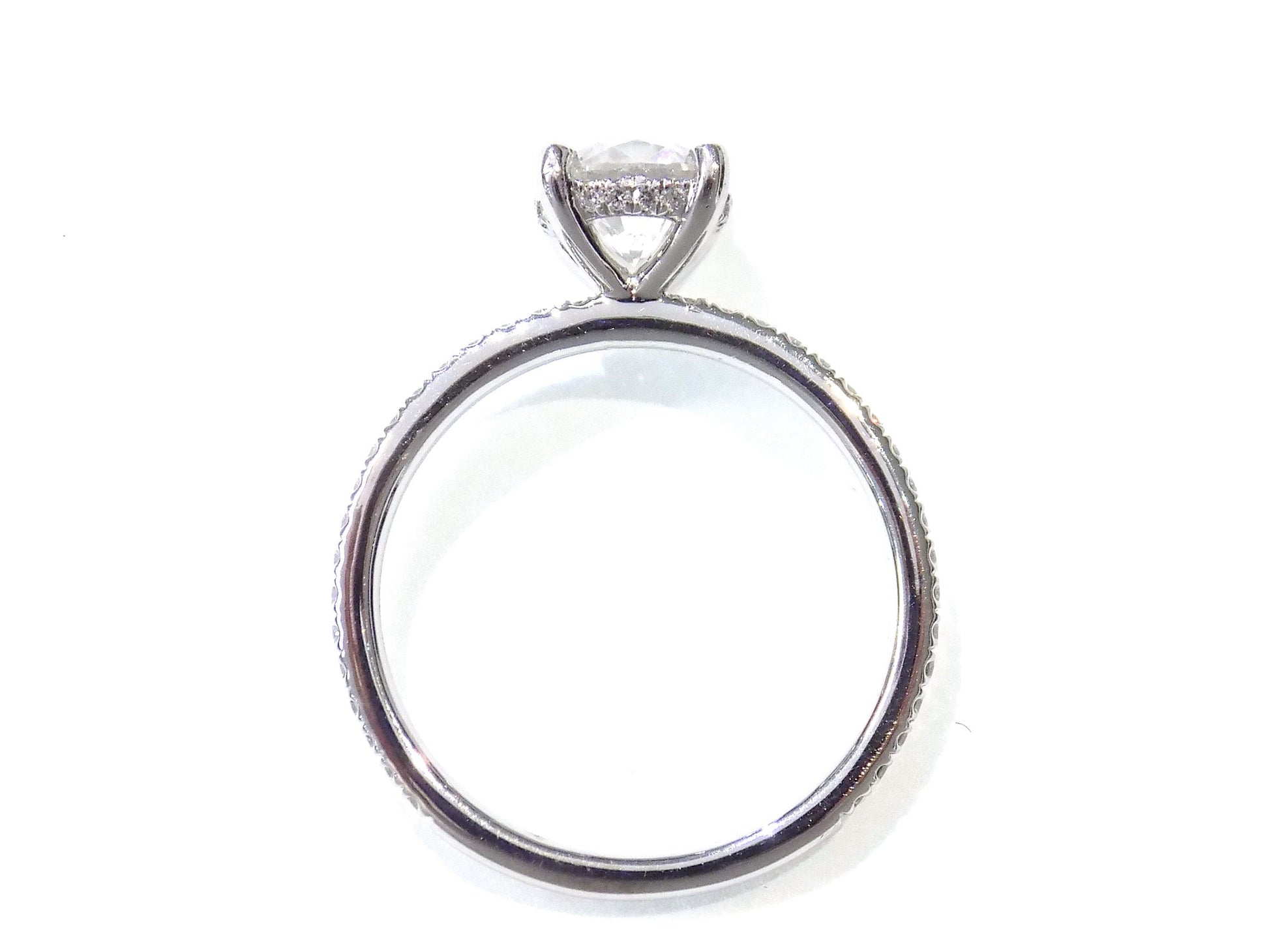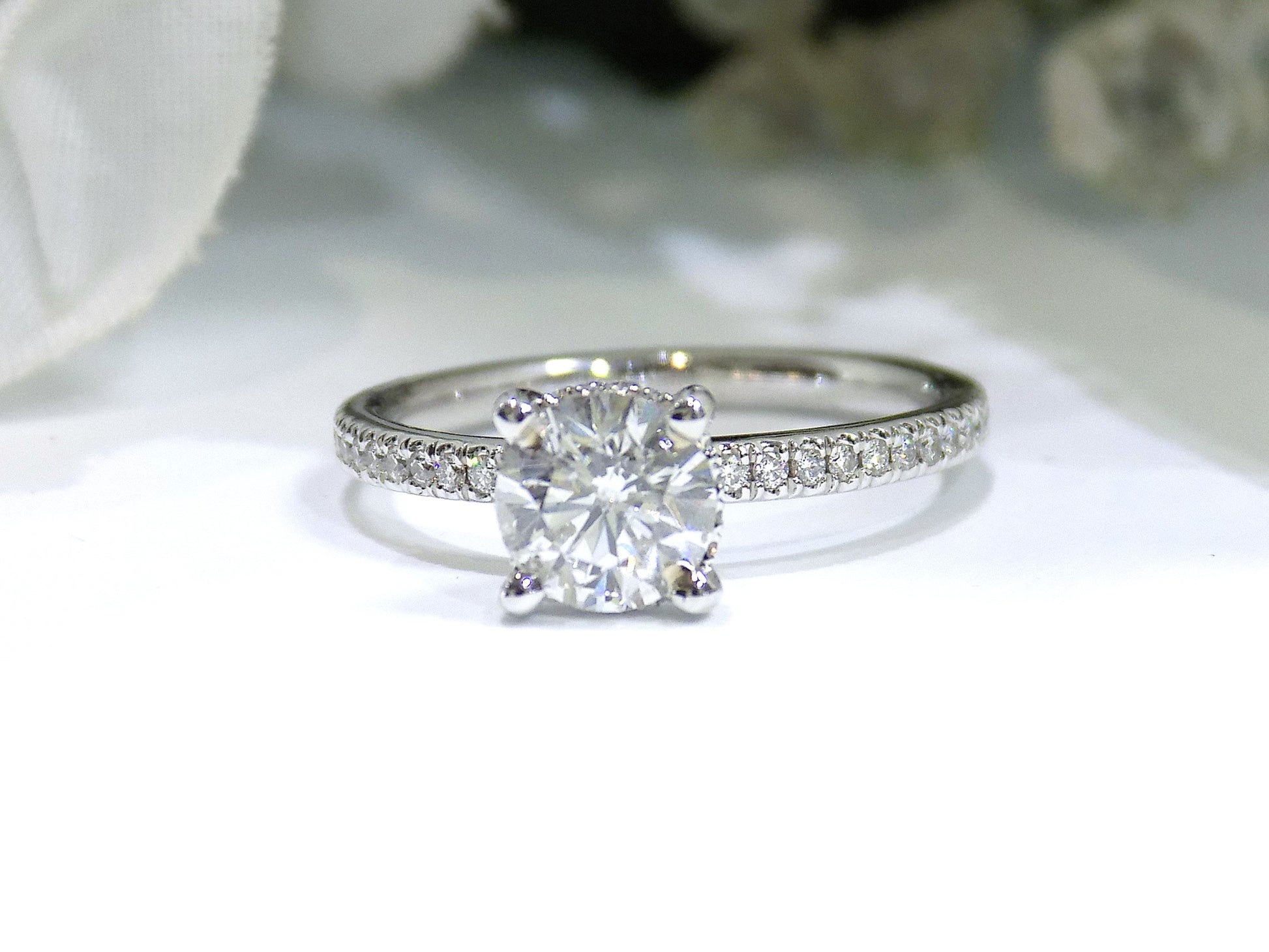 Very Popular! Natural Diamond 1.39ct Total Weight Straight Line Diamond Engagement Ring with a Really Nice 1.02ct Round Brilliant Center Diamond and it even has a Hidden Halo style diamond head in 14K White Gold.