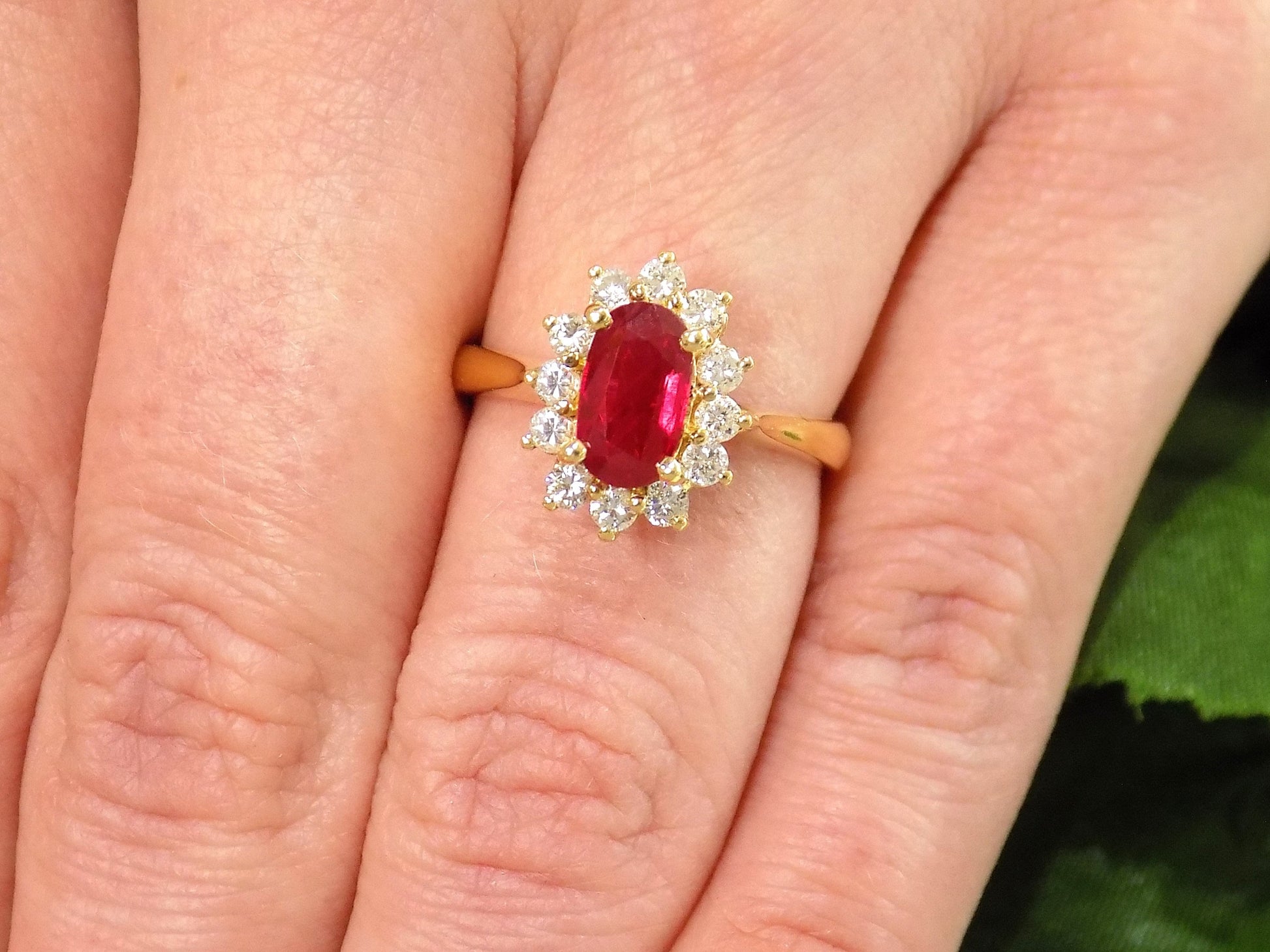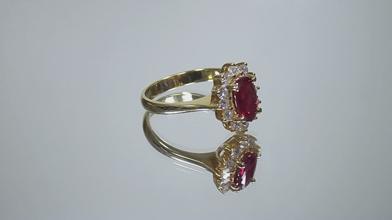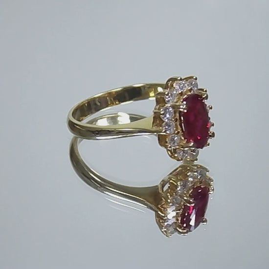 1.46ct Natural & Genuine Oval Burmese Ruby & Diamond Ring in 18K Yellow Gold - GIA Certified Natural Burmese