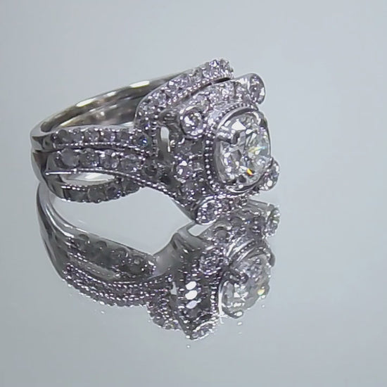 1.95ct TW Estate Natural Round Brilliant Diamond Bridal Set w/ .95ct Round Center in 14K White Gold - Set is Already Together