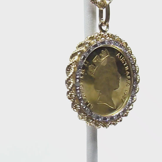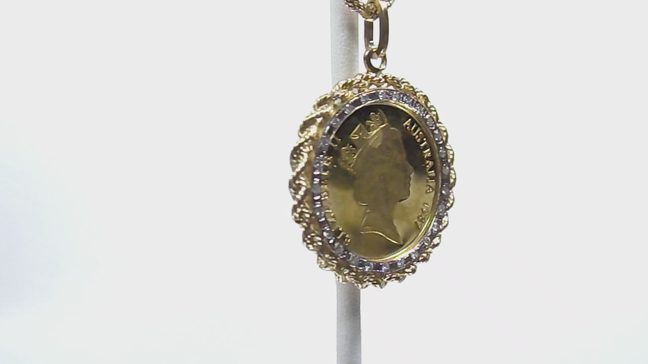 1987 $200 Australian Gold Coin Pendant with .25ct Diamond Bezel in 14K Gold - Coin is 10g of 22K Gold