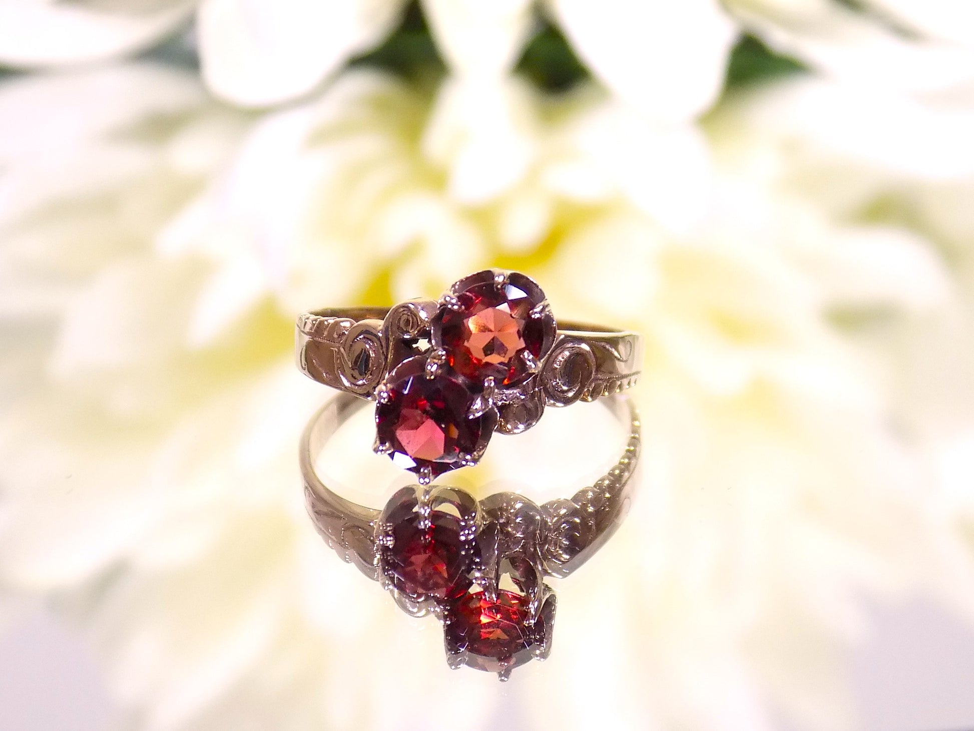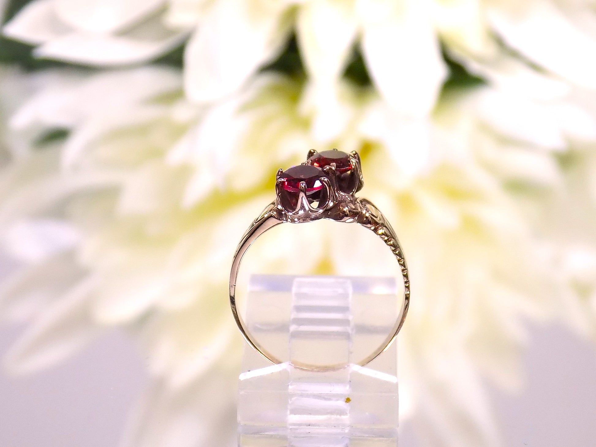 1ct TW Vintage Twin 2-Stone Genuine Garnet Ring in 10K Yellow Gold - .50ct Each