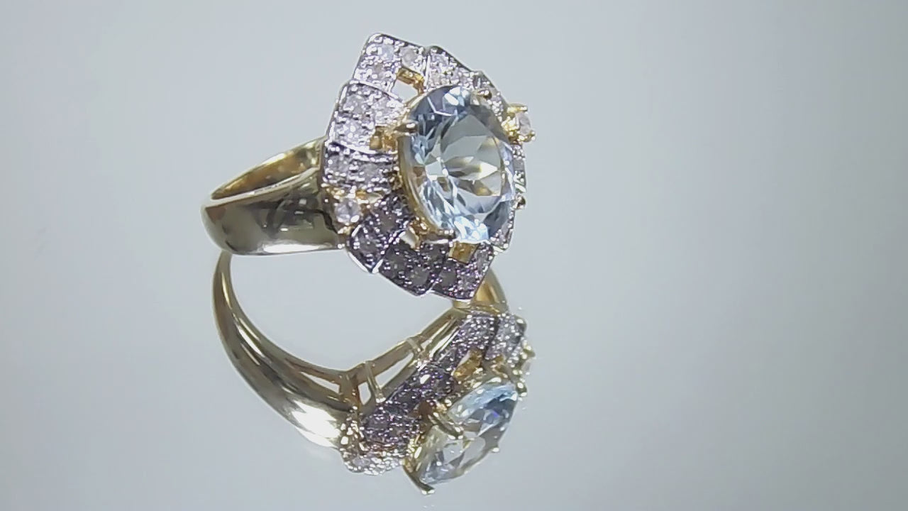 2.32ct Estate Oval Shape Aquamarine & Diamond Ring set in 14K Yellow Gold - Natural 2.15ct Aqua Center