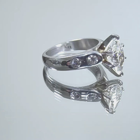 2.53ct TW Marquise Shape Diamond Engagement or Right Hand Ring with a Nice 2.03ct Marquise Center in a Cathedral Style Solid Platinum Mounting