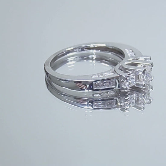 Modern Version of a Classic! This is a 1ct Total Weight 3-Stone Princess Cut Diamond Ring - sometimes called the Past, Present & Future ring. The ring has 3 Princess Cuts in the center with channel set princess cuts down the band and channel set round diamonds on either side for a completed diamond weight of .75ct or 3/4ct total in 10K White Gold.