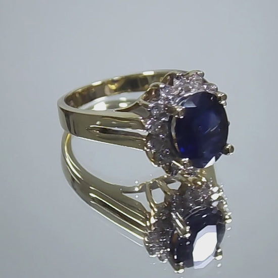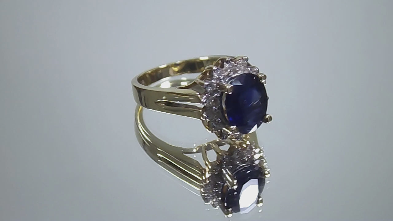 This is genuine LeVian estate 3.50ct total weight Natural Oval Shape Sapphire & Diamond Ring in 14K Yellow Gold. Fully restored to Like New condition.