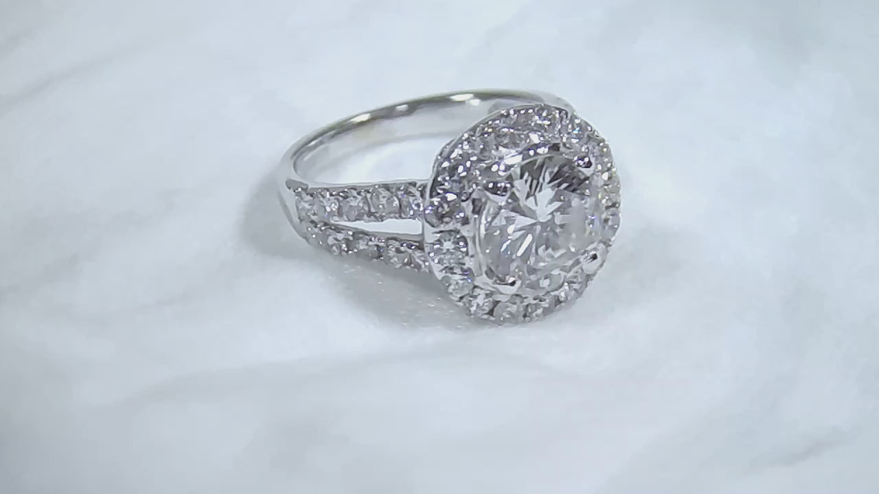 3.55ct TW Halo Style Natural Round Diamond Engagement Ring with 2ct Center in 14K White Gold