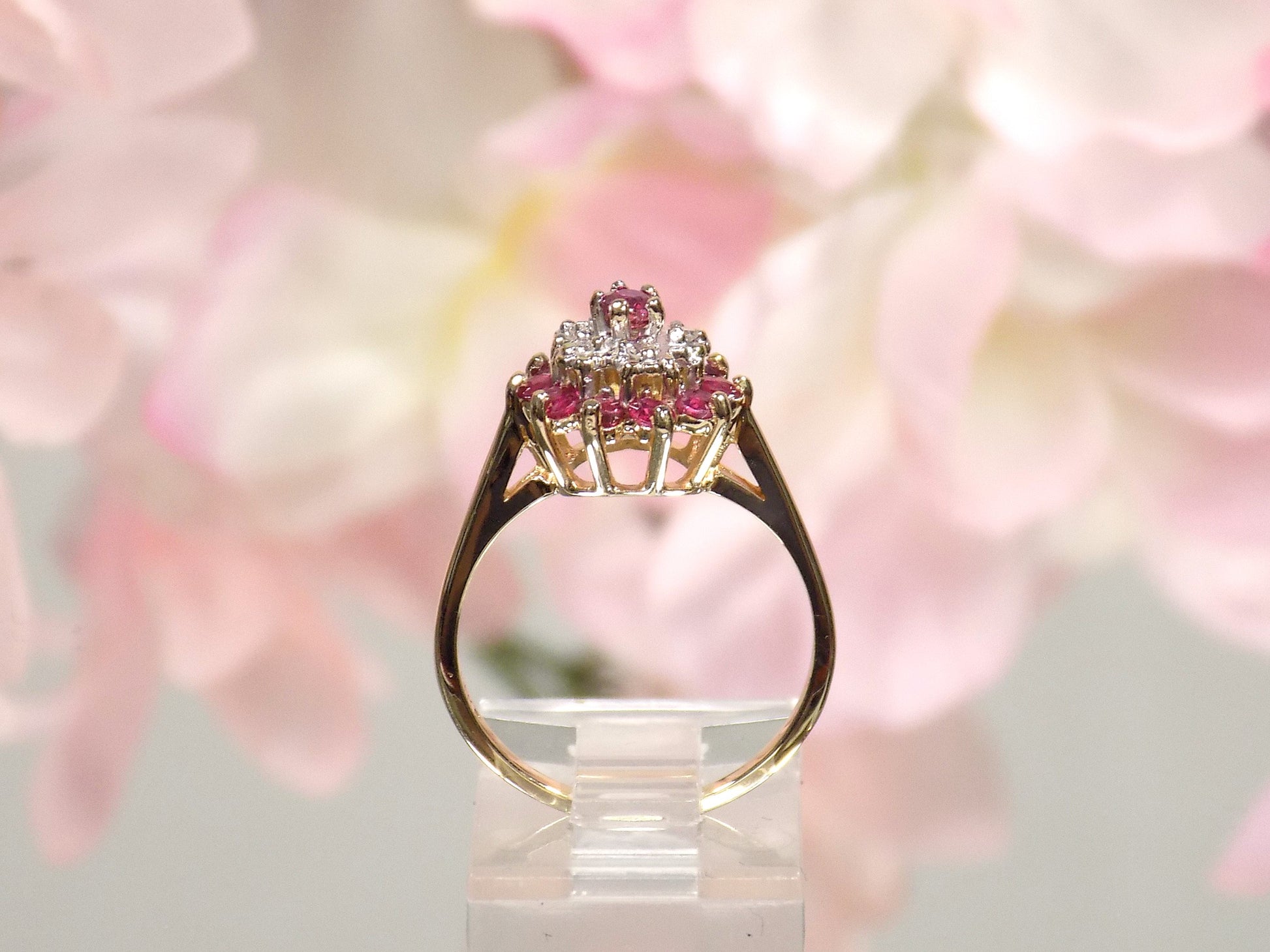 .50ct TW Estate Genuine Ruby & Diamond Estate Ring in 14K Yellow Gold - Cluster or Cocktail Ring, Like New Condition
