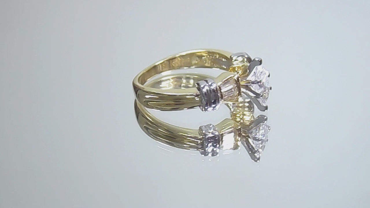 .80ct TW Natural Marquise Shape & Baguette Diamond Ring with a .44ct Marquise Center and .36ct in Baguette Diamonds set in 18K & Platinum 2-Tone Mounting