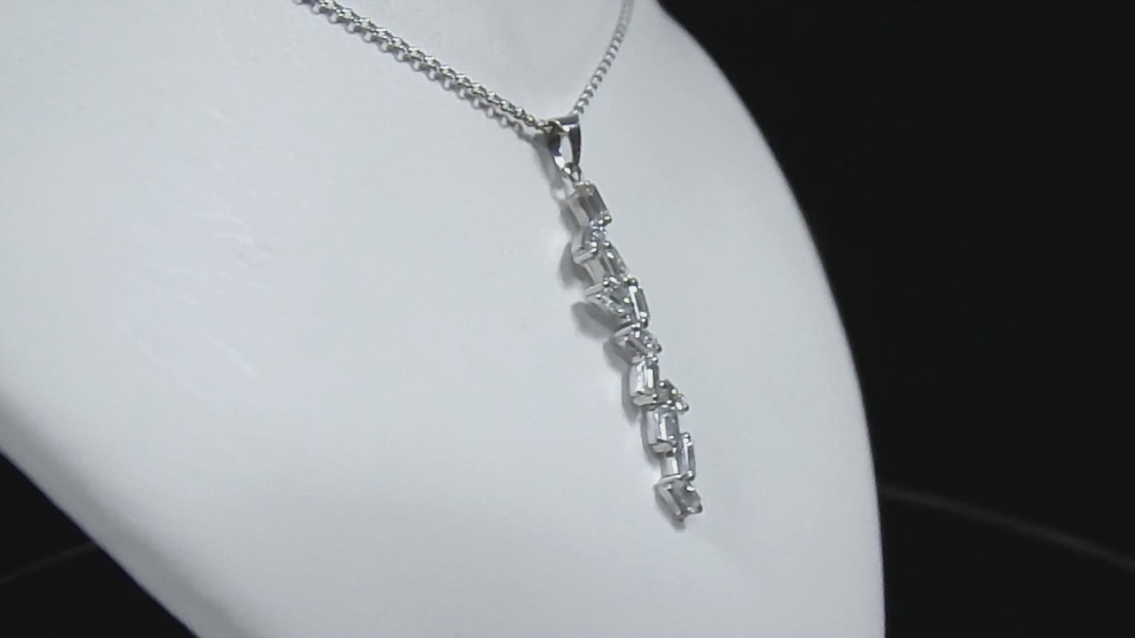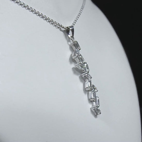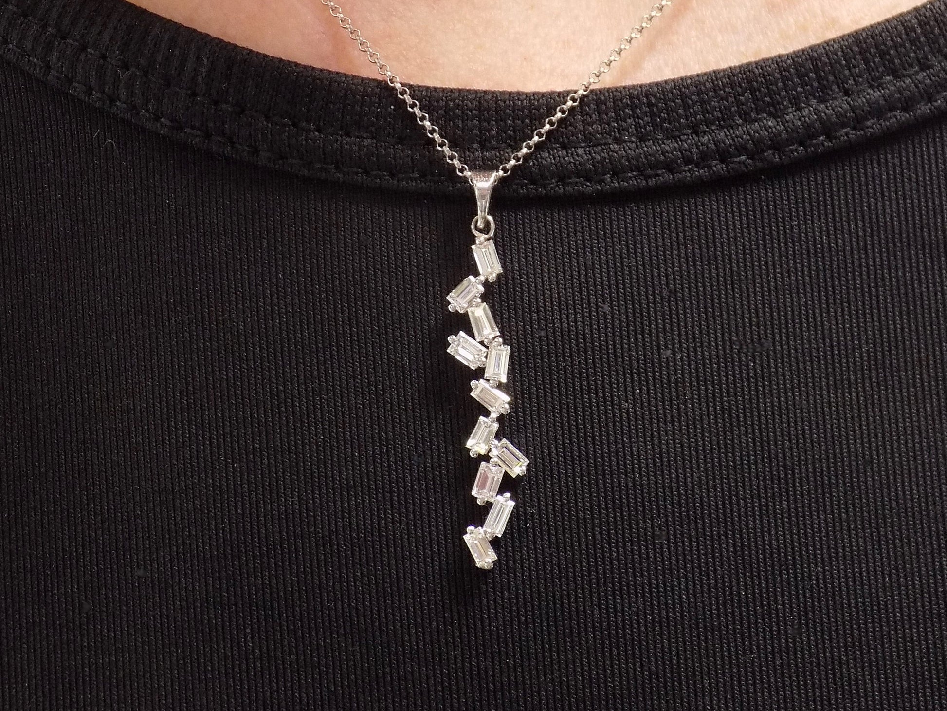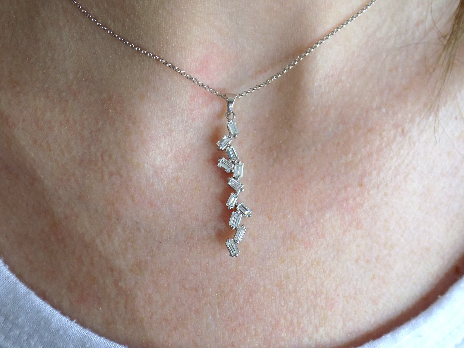 Custom Made Women's .91ct TW Natural All Baguette Diamond Drop Pendant or Necklace in 18K White Gold - Adjustable Chain