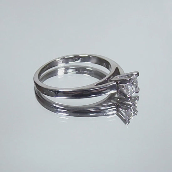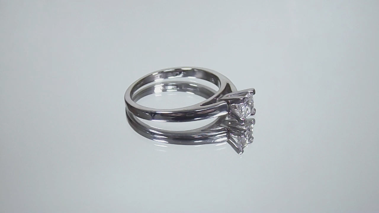Estate Ring .51ct Natural Princess Cut Cathedral Style Diamond Solitaire in Solid 14K White Gold