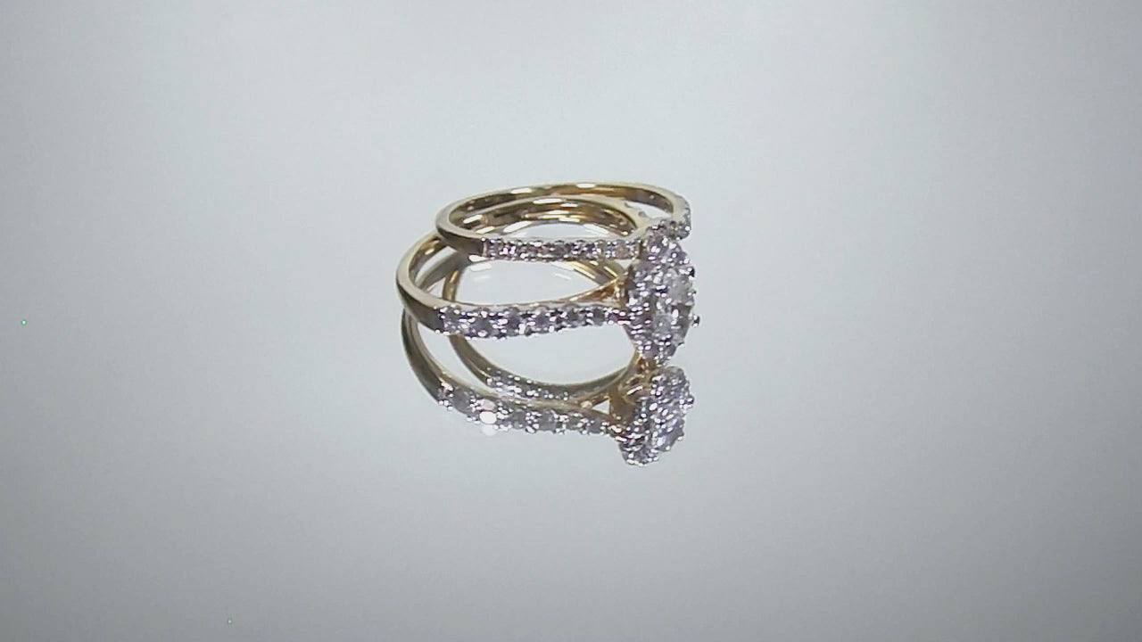 Women's 1ct TW 2-Piece Halo Style Natural Oval Diamond Wedding Set - Engagement Ring plus Matching Band in 14K Yellow Gold