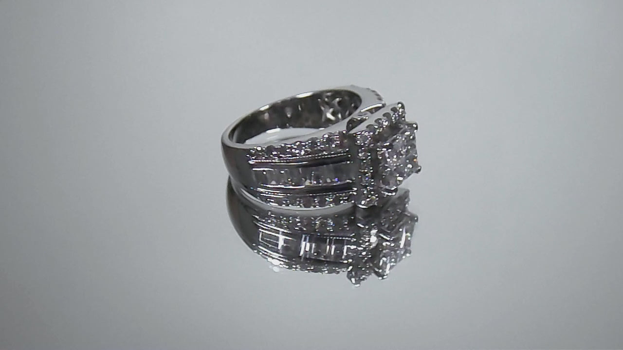 Women's 2ct TW Natural Princess Cut, Baguette & Round Diamond Ring in Solid 14K White Gold