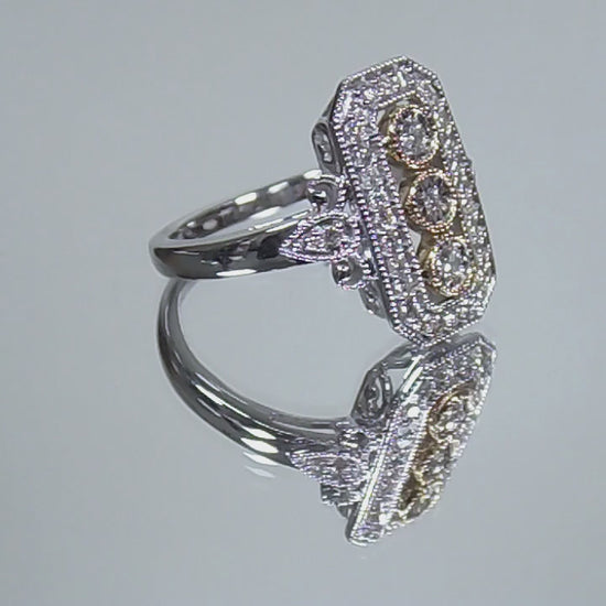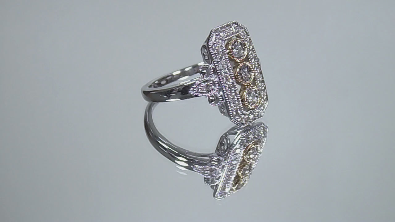 Women's .37ct TW Filigree Style Natural Round Brilliant Diamond Cocktail Ring in Solid 10K White & Yellow 2-Tone Gold