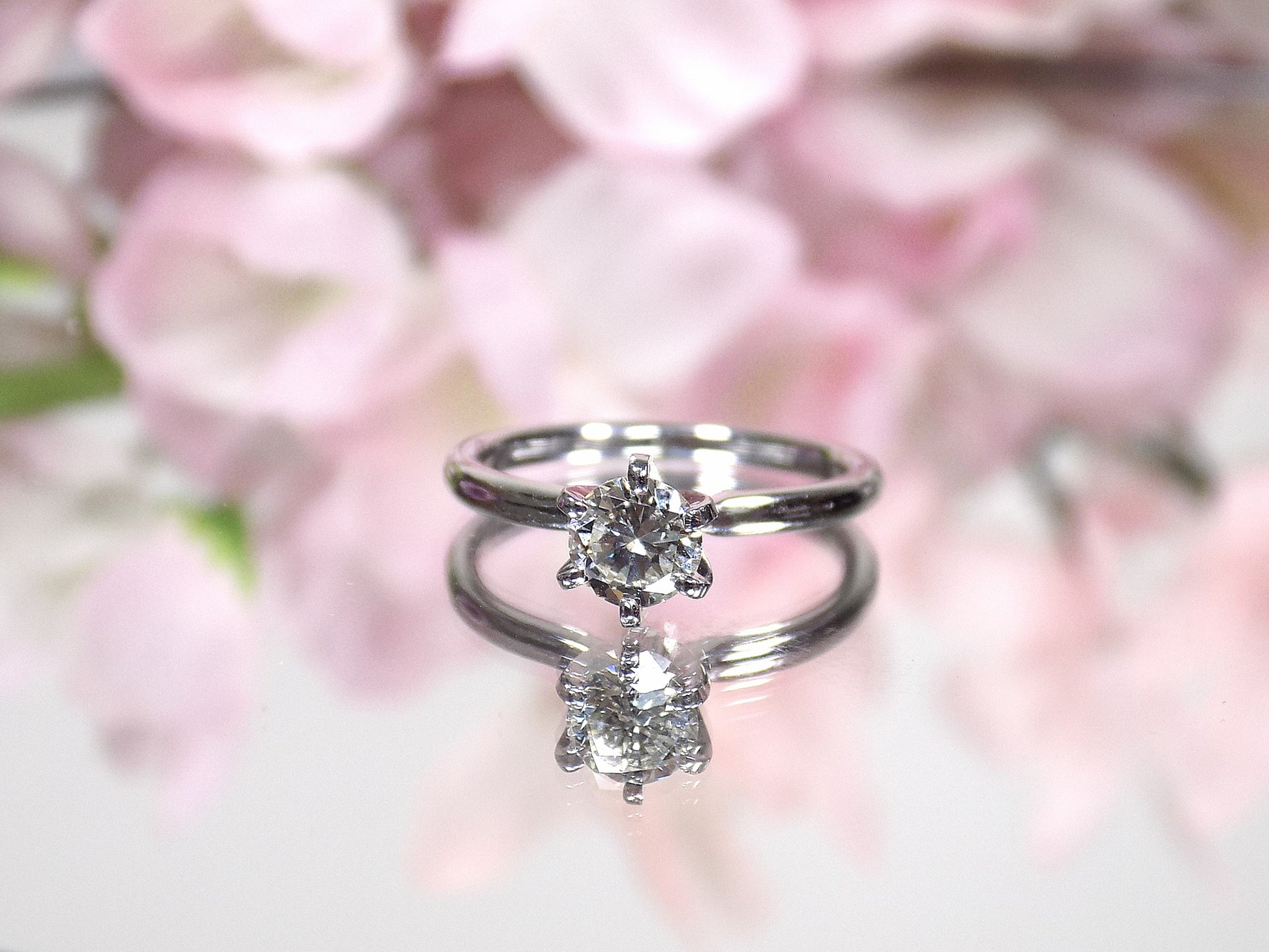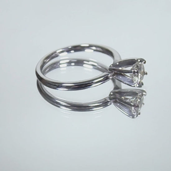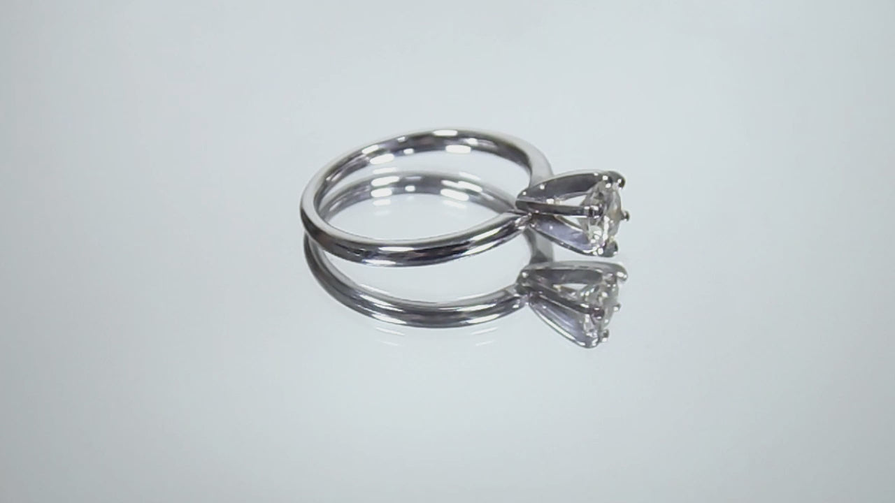 Simple and Traditional! This is a High Quality .60ct Natural Round Brilliant Diamond Solitaire in a Tiffany Style Setting of 14K White Gold. The diamond is well protected in a 6-prong head.
