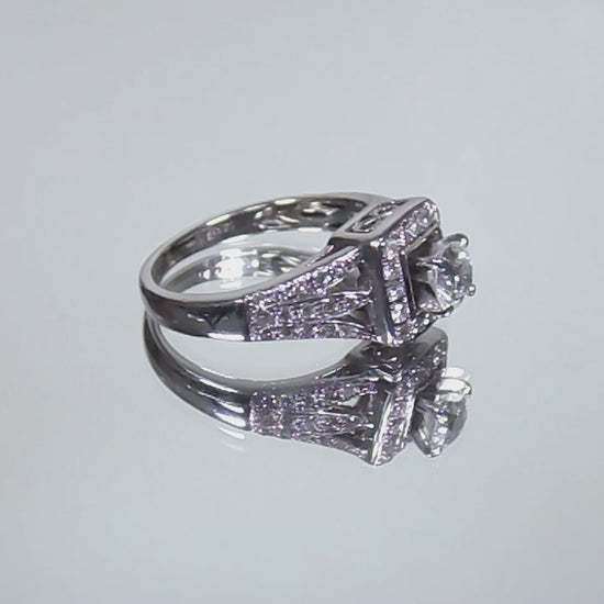 This is a Split Shank Square Halo Style Ring with a Natural Round Brilliant Diamond Center in 14K White Gold. It features a .33ct Natural Round Brilliant Diamond Center with a total of .37ct in Natural Round Diamond Accents. The completed diamond weight of the ring is .70ct total. This one works as well for an engagement ring, promise ring OR a right hand ring.